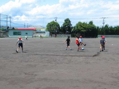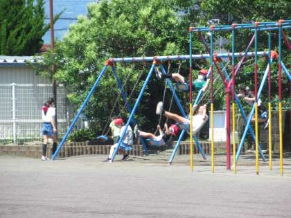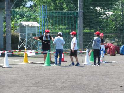 晴天の下、元気に活動しています。熱中症指数の測定は欠かせません。