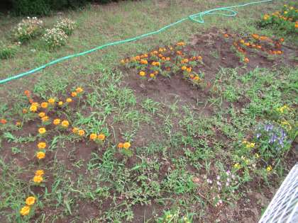 用務員さんが、グラウンド北側の花壇に、マリーゴールドでみんなのスローガン「大平小スカイツリー」を描いてくださいました。ありがとうございます。