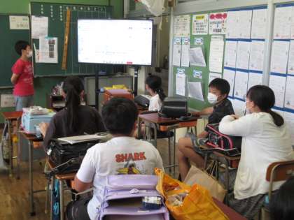 帰りの会を行っています。明日の時間割についてみんなで確認しています。