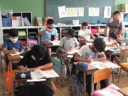 「原因と結果の関係を見いだそう」が本時の課題です。論理的な文章を書く練習をしています。