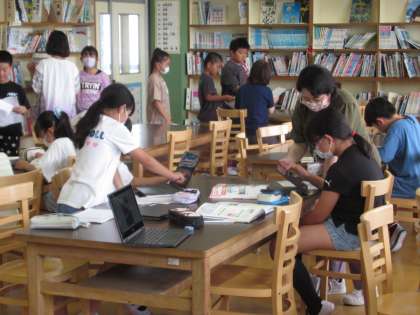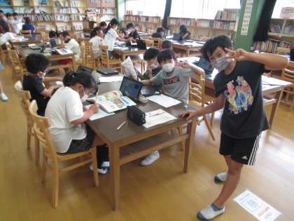 「文化のちがいを調べよう」に取り組んでいます。テーマを選び、図書館の資料から必要な情報を集めています。