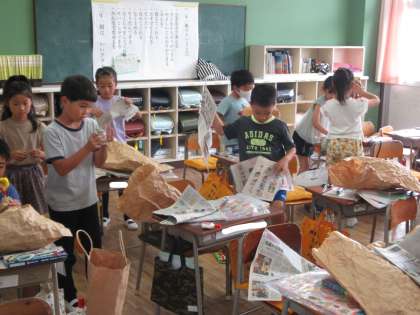 「くしゃくしゃぎゅっ」をテーマに、思い思いの生きものを制作しています。