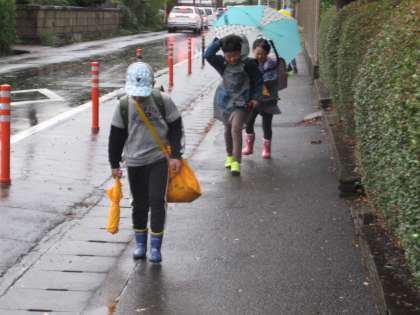 雨風が弱くなったり、強くなったりで登校が心配されましたが、気をつけて登校していただくことで、通常登校となりました。