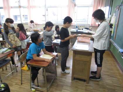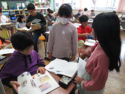 「ミニギャラリーのかいせつ員になろう」に取り組んでいます。グループで練習しています。