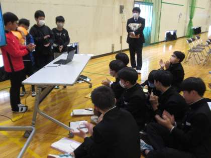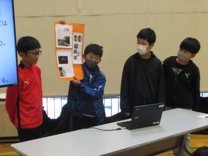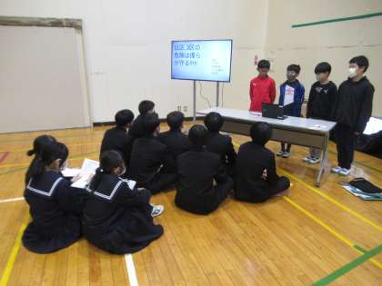 大平中学校に出向き、総合的な学習の時間で学んだことを発表しました。