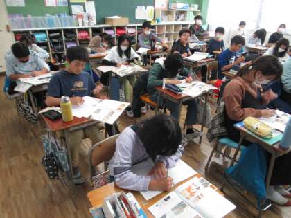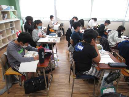江戸時代について学習しています。墨絵と浮世絵を比較しています。
