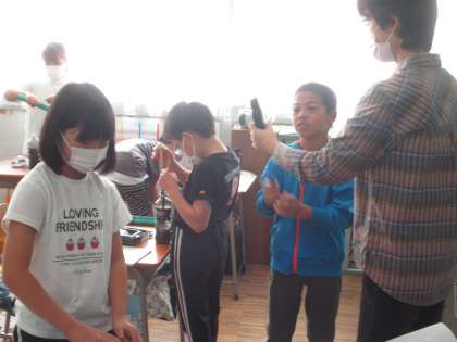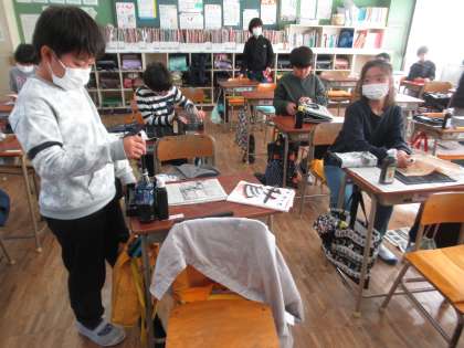 「果物」という字にチャレンジしています。書き終わってちょうど片付けに入るところでした。