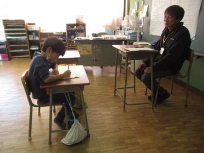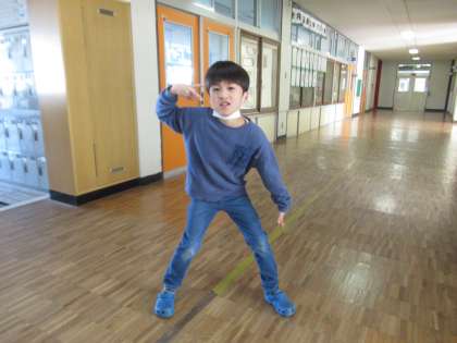 教頭先生と進出漢字の練習をしています。休み時間には、ポーズをきめてくれました。