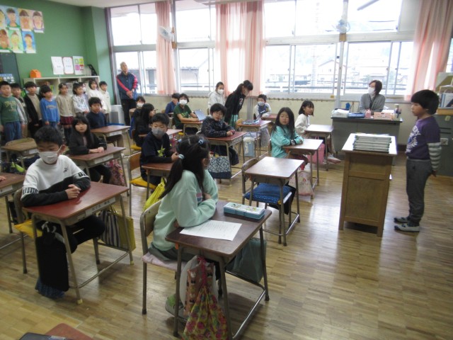 来年に向けて、2年生が3年生の朝の会の様子を参観しました。