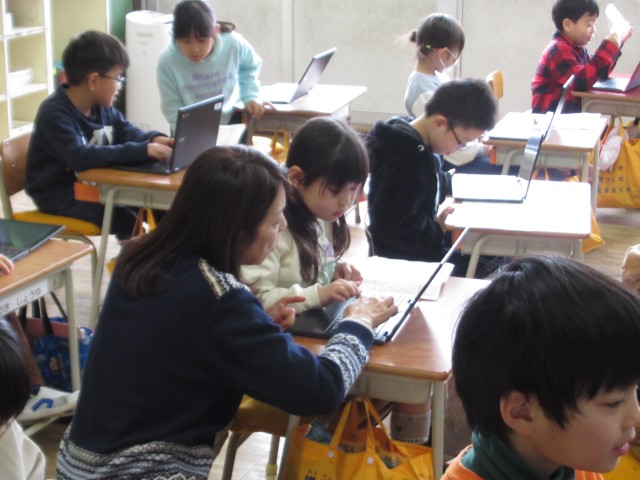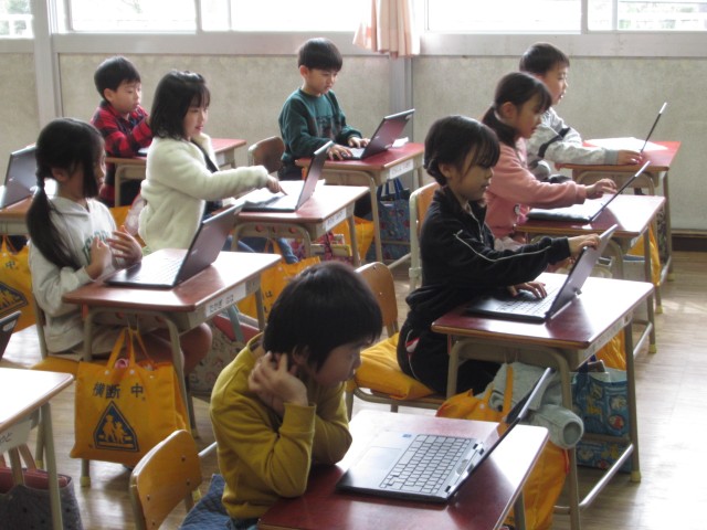クロームブックをつかってアンケート回答を行っています。