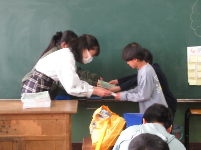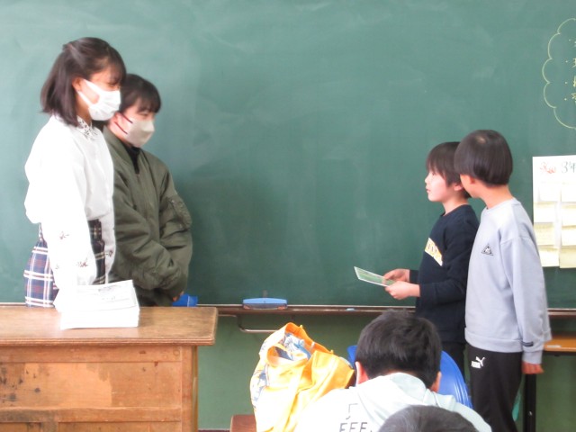 3/7(木) 3年1組 帰りの会(石仏カレンダー・石仏トランプの贈呈)
