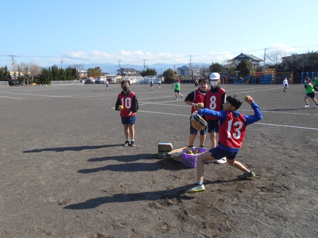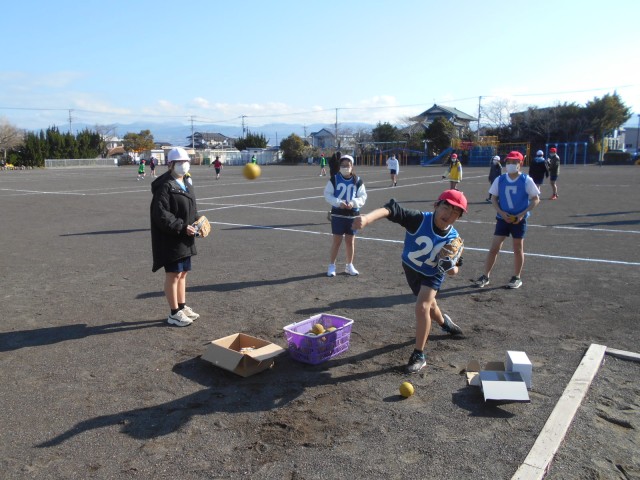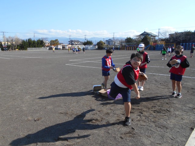 今日は、3年生と6年生が、大谷選手のグローブをつけて、速球コンテストを行っていました。