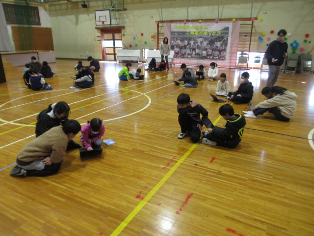 体育館で、1年生・6年生 交流の会 が実施されました。