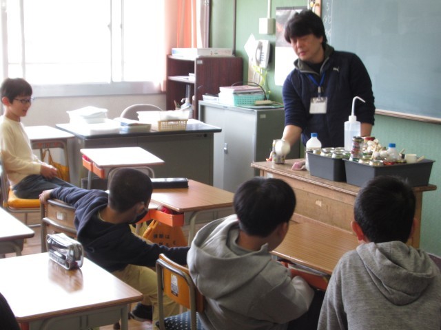 エタノールを使って、簡単なロケット実験を演示してくださっています。