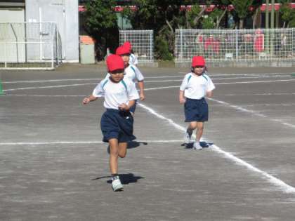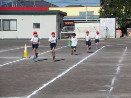かけ足記録会を実施しています。練習してきた成果を思いっきり発揮しています。