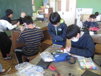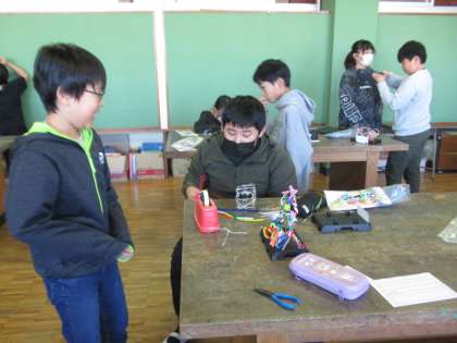 ワイヤーアートに取り組んでいます。はんだづけも行い、作業がむずかしそうですが頑張っています。