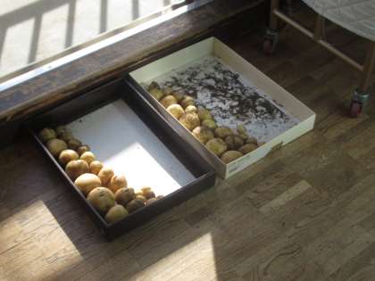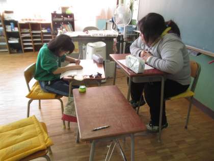 漢字の練習をしています。育てたジャガイモも収穫しました。