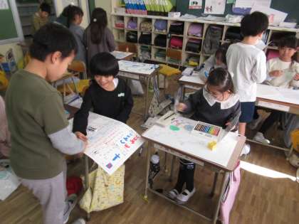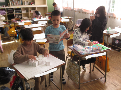 一年生と一緒に遊ぶためのすごろくを製作しています。