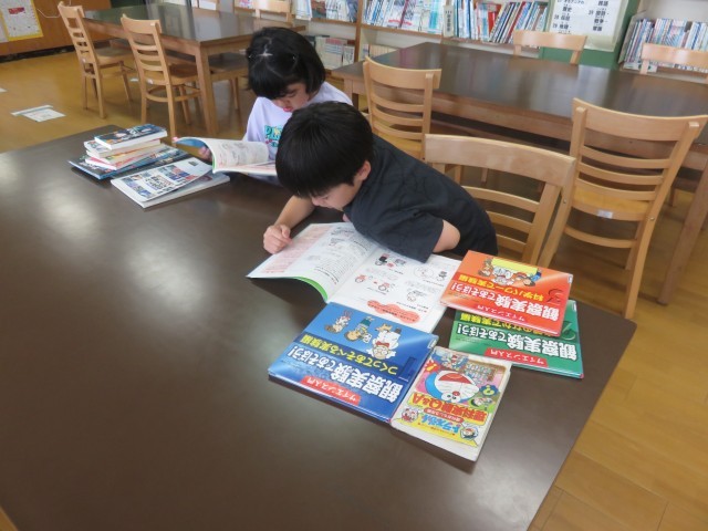 図書館で調べ学習をしています。