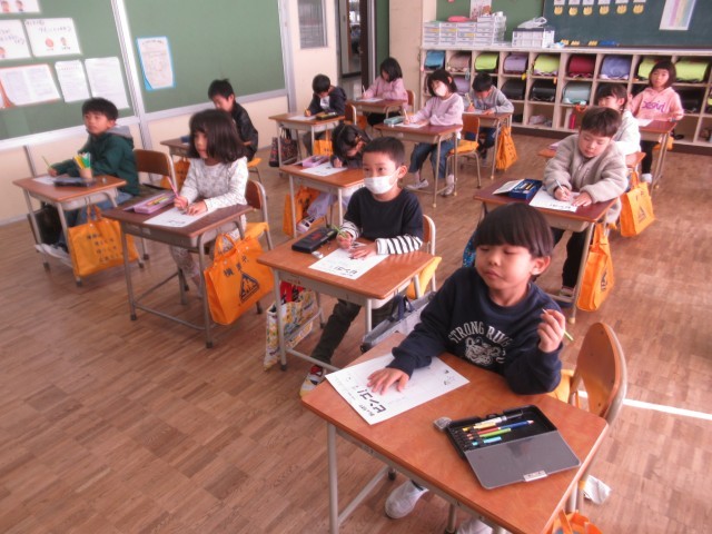 冬休みの思い出をテーマにビンゴゲームを行っています。