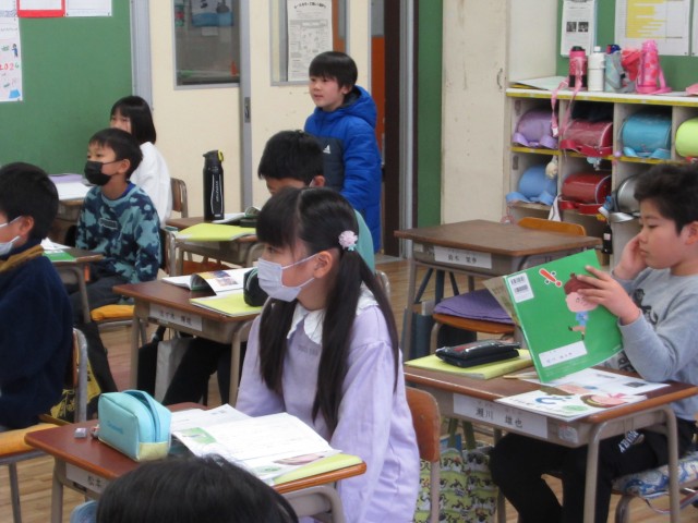 「ナホトメグ ~いつも一緒だね~」を読みながら、登場人物の思いについて意見交換しています。