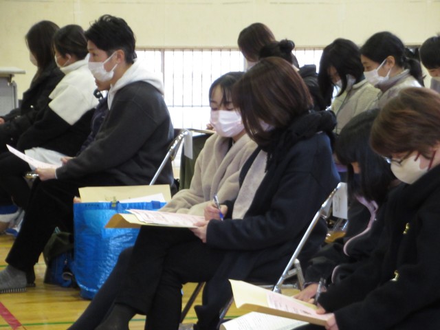 学用品を受け取り、説明を聞きながら4月からの生活に期待が膨らみます。