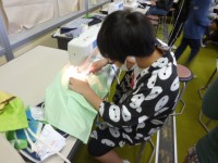 1年生図画工作「ちょきちょきかざり」の授業の様子です。はさみを使って、折り紙を自分の好きな形に切りました。切った形がとても素敵な模様になっている子もいました。できあがった作品を1つのひもにつけて、素敵な飾りができあがりました。