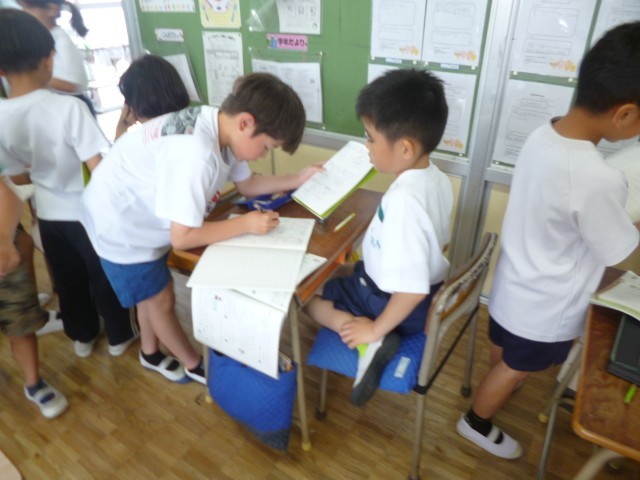 2年生算数「2けたのたし算」の授業の様子です。練習問題に取り組み、終わった子は、まだ終わっていない子のサポートをしていました。やり方の説明をしたり、丸付けをしてあげたりと本当に友達思いの子が多いなと思いました。友達にやり方を教えてあげることで、その子自身の学習の理解も上がっている感じがしました。