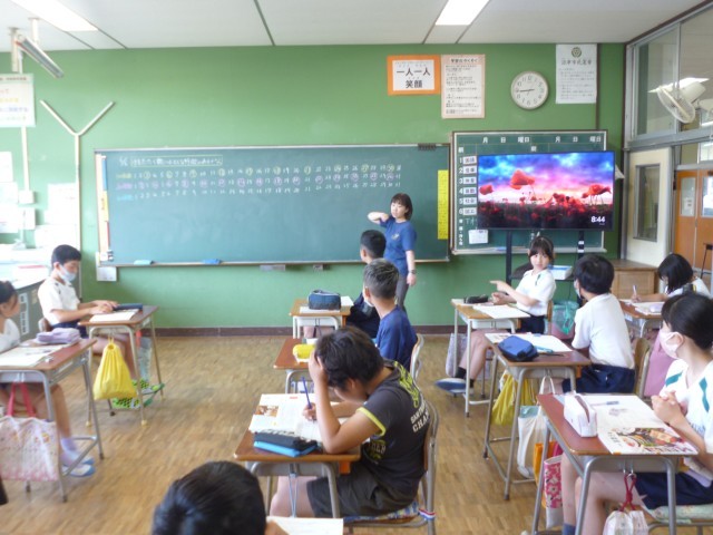 5年生算数の授業の様子です。公倍数の学習をしました。2の倍数、3の倍数、4の倍数で考えました。それぞれの倍数をノートに書いてから、グループで数字を順番に言っていき、2の倍数の時に手をたたく、3の倍数の数字に手をたたくなどして楽しく学習を進めました。