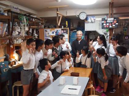 上野公園の後は、江戸切り子の体験をしました。みんな思い思いの図柄を真剣に削っていきました。自分で作ってみると難しさがよく分かり、飾られている精巧な作品の素晴らしさ、職人技のすごさが実感できたようです。最後に職人さんに質問して学びを深めていました。
