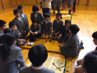 3・4年生が企画したゲームが始まります。まずは、グループで、作戦会議。