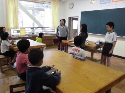 給食をみんなで食べた後は、5年生を中心に、みんなで写真を撮り、1〜5年生が、お世話になった6年生に向けて、ありがとうのメッセージを書くことになりました。6年生と過ごした楽しかった出来事を思い出しながら、カードを丁寧に書いていました。