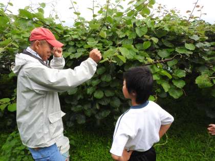 6月17日の8:30よりjAの相磯様にご指導を仰ぎながら、5年生がキウイの摘果を行いました。ぶどうのように実がなっているキウイの中から大きく育つように摘果して質のいいキウイを育てます。前回の受粉のと木に自分で受粉したキウイに印をつけておいたので、大切にその身を扱っていました。