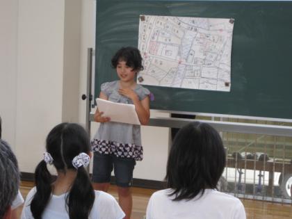 6年生になると交通安全リーダーとして交通安全について考える機会があります。事前に自分が住む地域の交通安全に気をつけたい危険地域をカメラで撮影し、PTA役員、保護者、警察署員等の大人と一緒に交通安全を考える会を催します。今年は地域ごとパネルディスカッション形式をとって発表をしました。