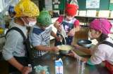 家庭科室からにぎやかな声が・・・? 4年生が何か作っていますよ。白い粉と牛...