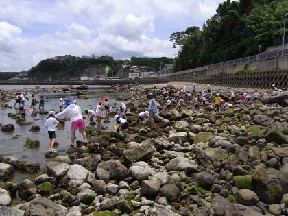 ムラサキウニをゲット!御殿場の印野小の1,2年生は夏の西浦の磯を十分楽しめた...