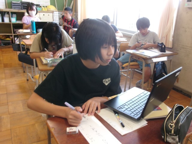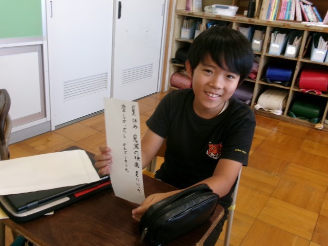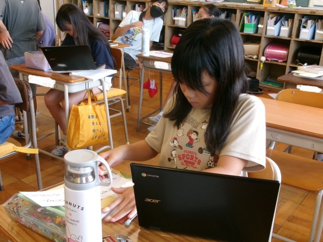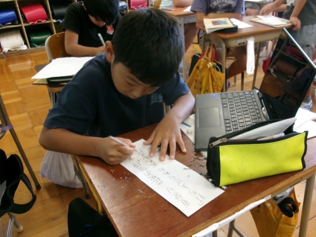 5年2組の国語の授業の様子です。夏休みの思い出短歌です。