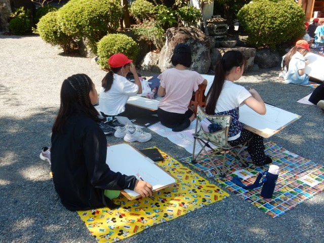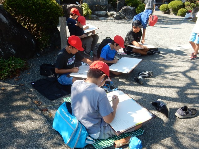 少し暑かったのですが、みんな真剣に対象となるものを見ながら描いていました。この後は、学校で続きを描いていきます