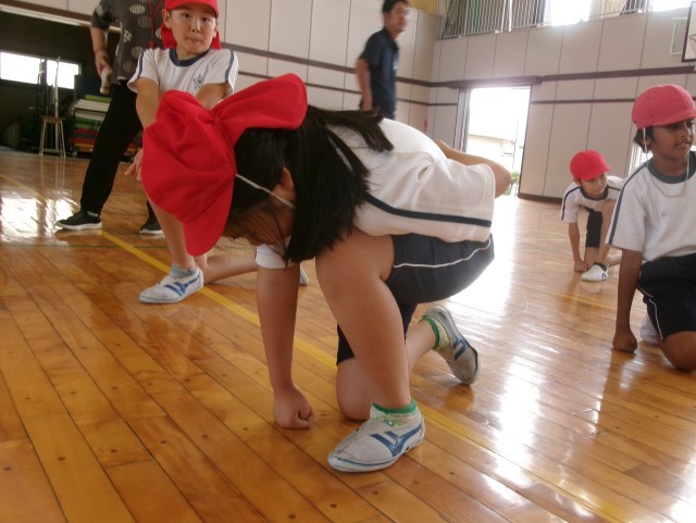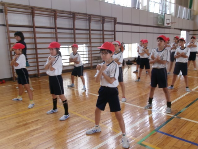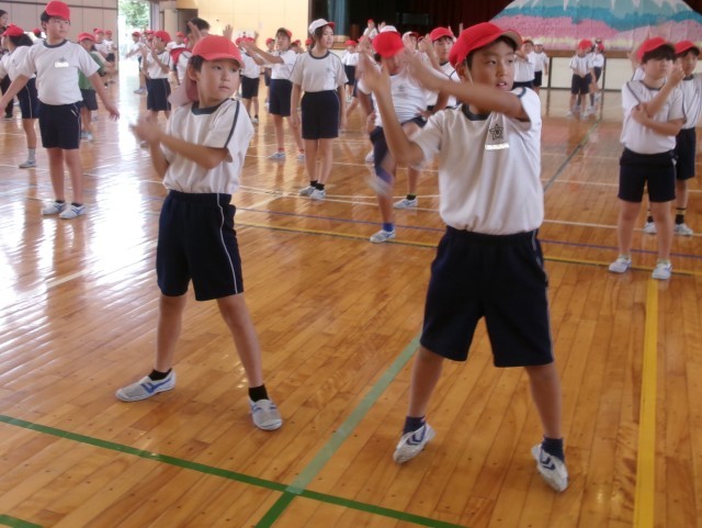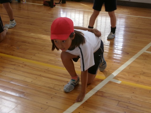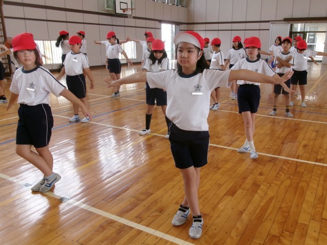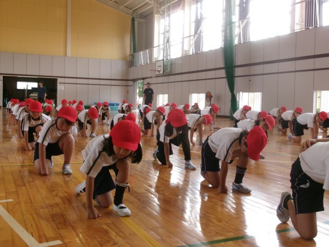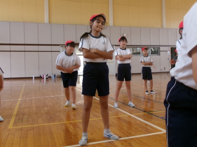 3年生と4年生の運動会練習の様子です。