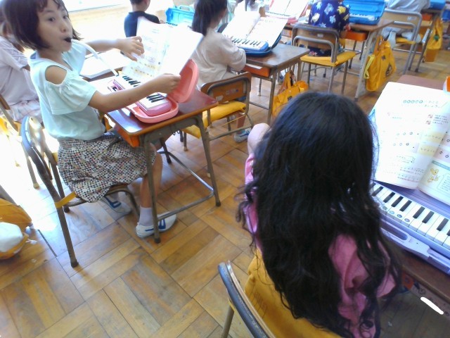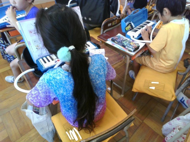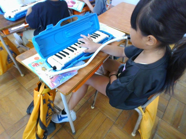 1年生は音楽で鍵盤ハーモニカの練習をしています。自分が好きな曲がひけると、楽しそうです。