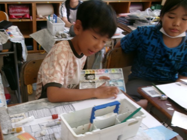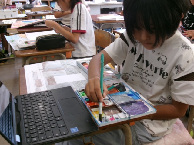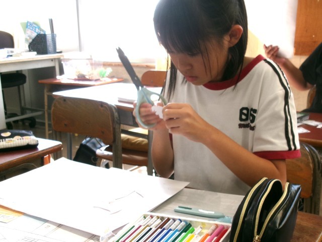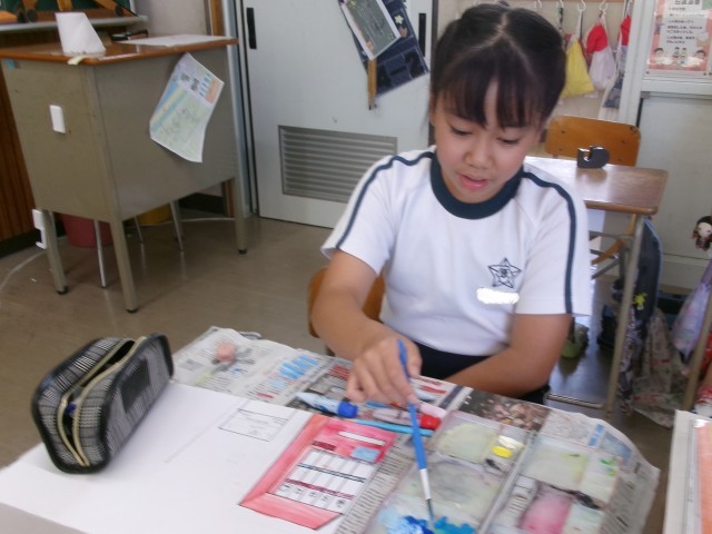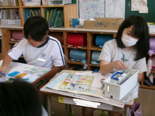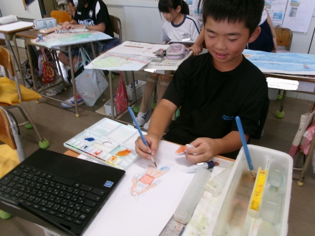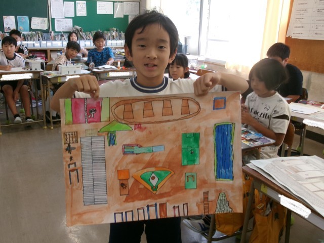 4年2組の図工の授業の様子です。未来の原の町もだいぶ完成してきました。