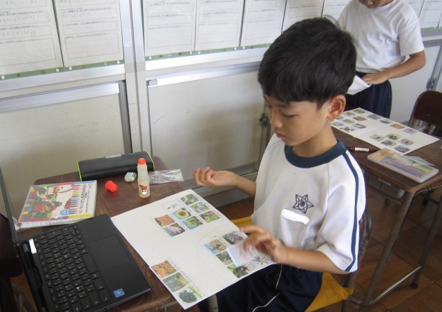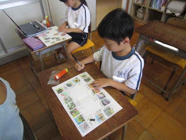 2年1組の読解の時間の授業です。生き物を季節や種類で仲間分けして、生き物図鑑を作りました。