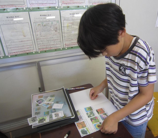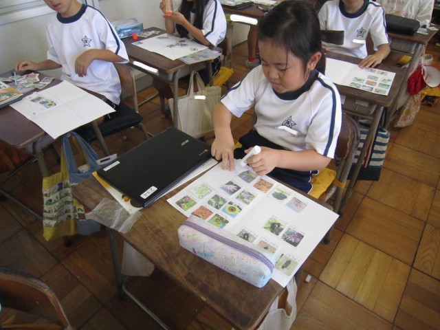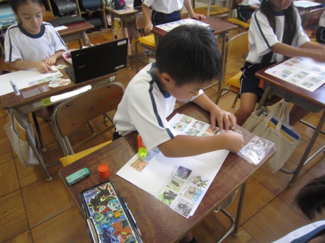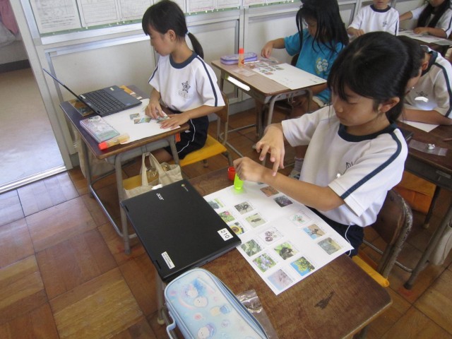 2年2組の読解の時間の授業です。生き物を季節や種類で仲間分けして、生き物図鑑を作りました。
