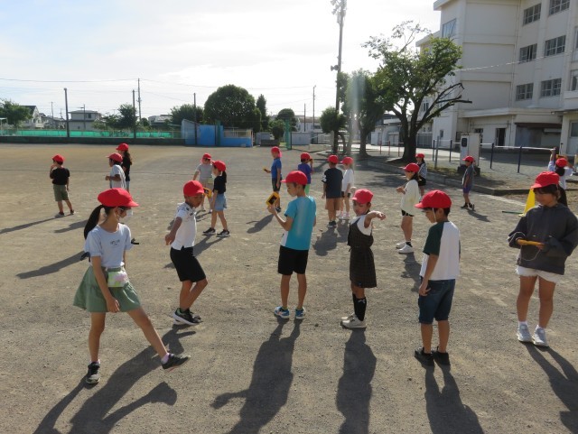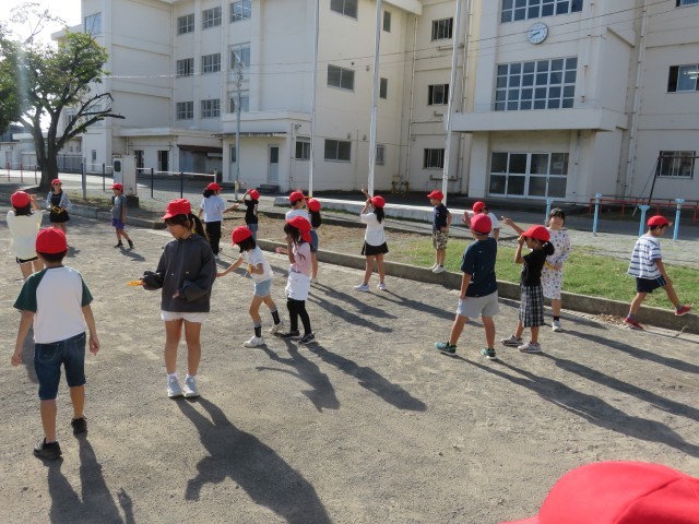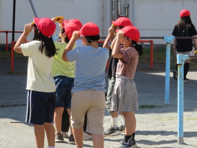 3年1組の理科の授業の様子です。遮光版を使って太陽の位置を確かめ、影の方向を観察しました。また学んだことを生かして影ふみ遊びをしていました。
