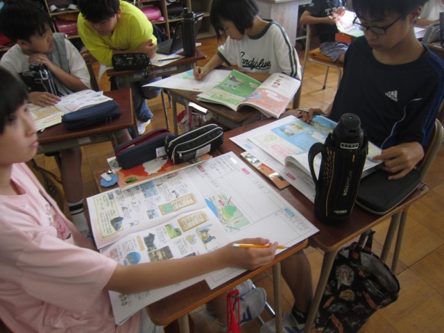 6年3組の読解の時間の授業です。沼津に来る人をもっと増やすにはどんな施設があればよいかを考えるために、沼津の各地域にある施設などを調べました。