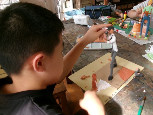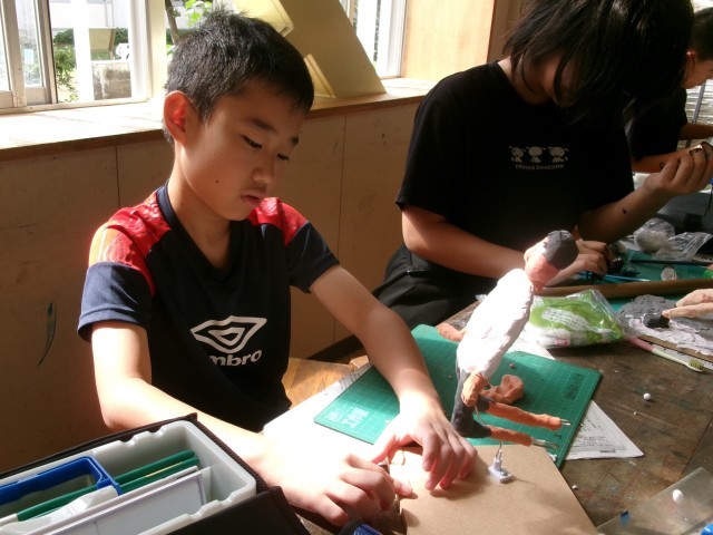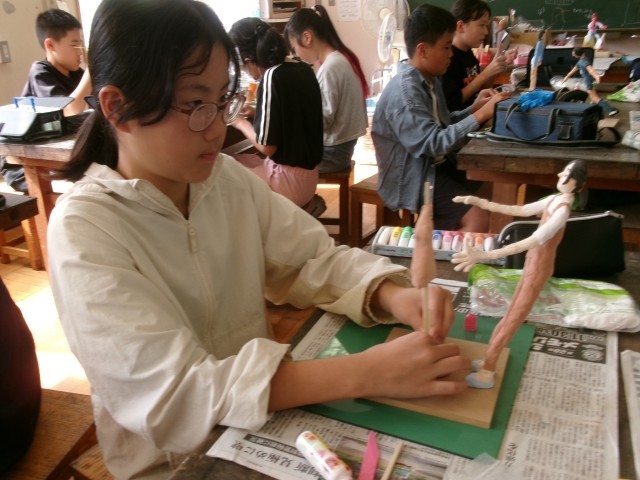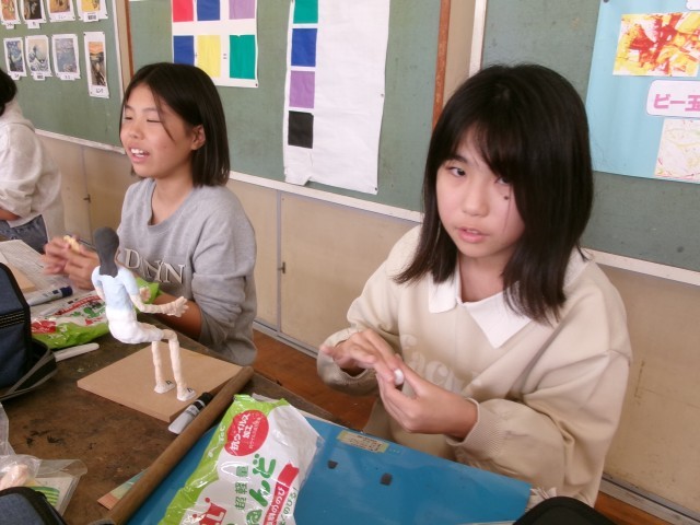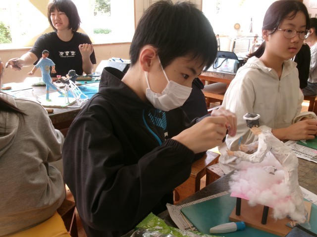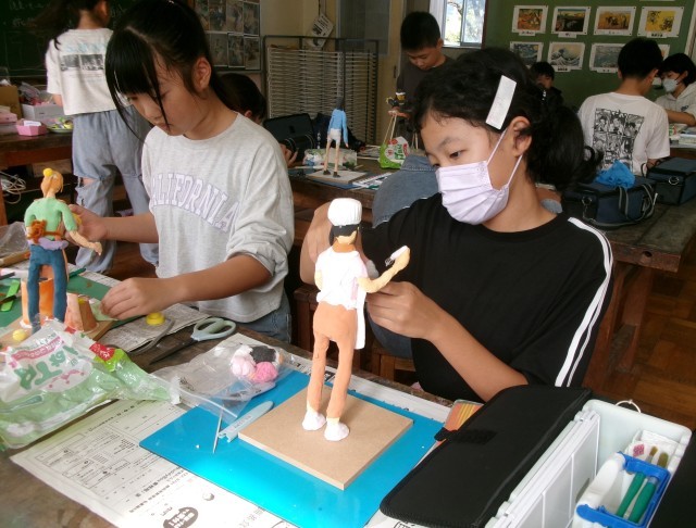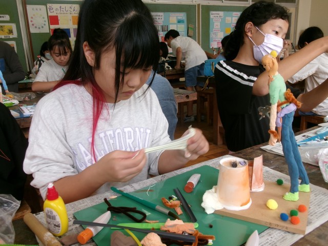 6年3組の図工の授業の様子です。「未来の私」もだいぶ仕上がってきました。小物作りにも凝り始めています。