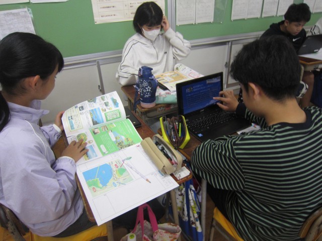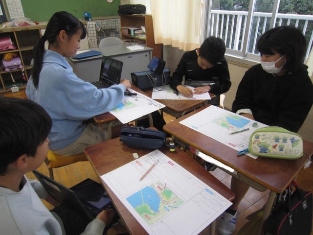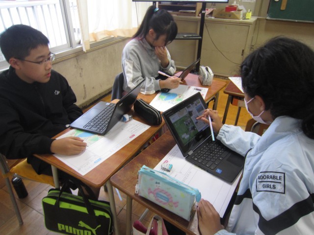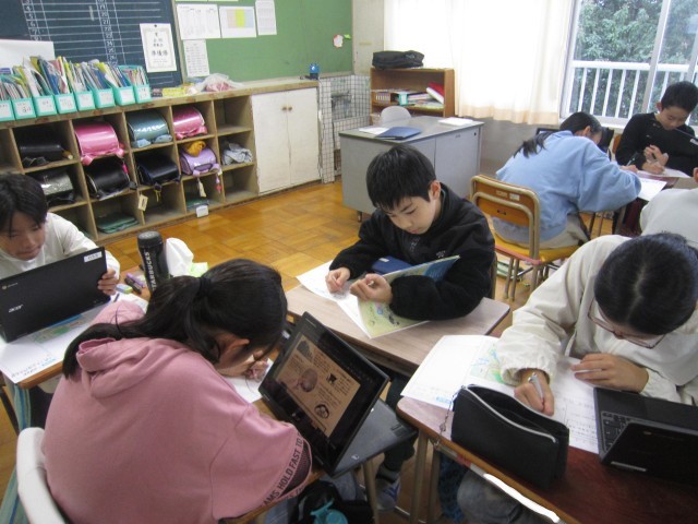 6年1組の読解の時間の授業です。沼津に来る人をもっと増やすにはどんな施設があればよいかを考えるために、沼津の各地域にある施設などを調べました。