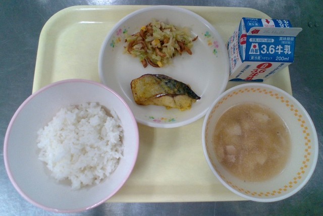 ごはん 牛乳 さばのカレーチーズ焼き パリパリごぼうサラダ ポテトスープ