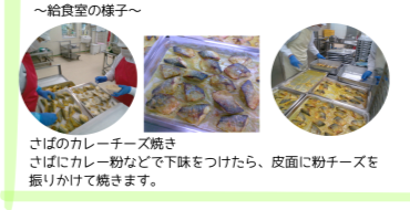 「今日のやさいがカリカリしていておいしかったです。さばのカレーチーズ焼きがおいしかったです。」