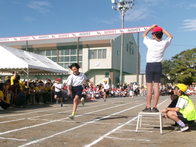 5年生の個走「百獣を超え誌挑戦者、110の王!!!」の様子です。